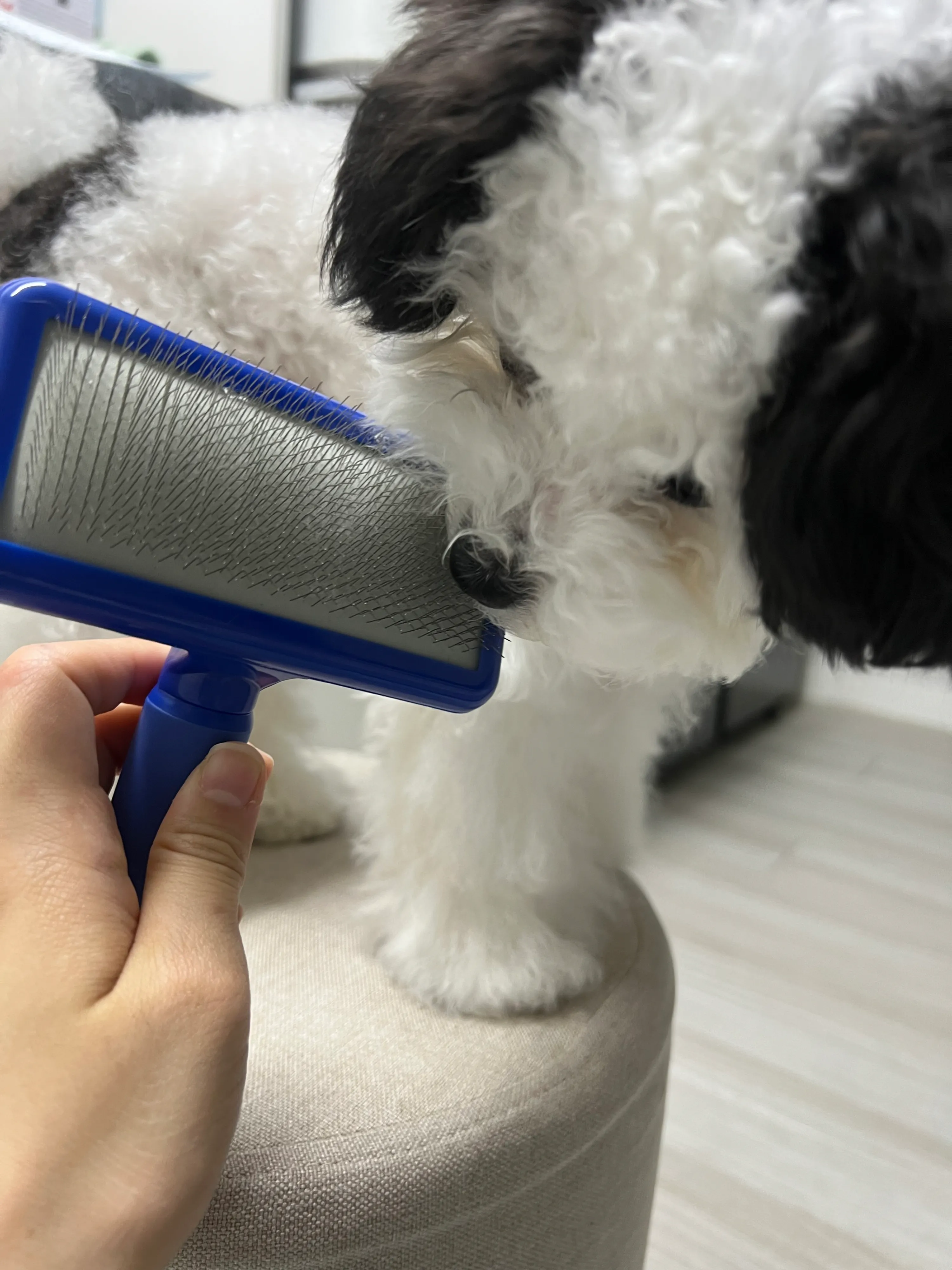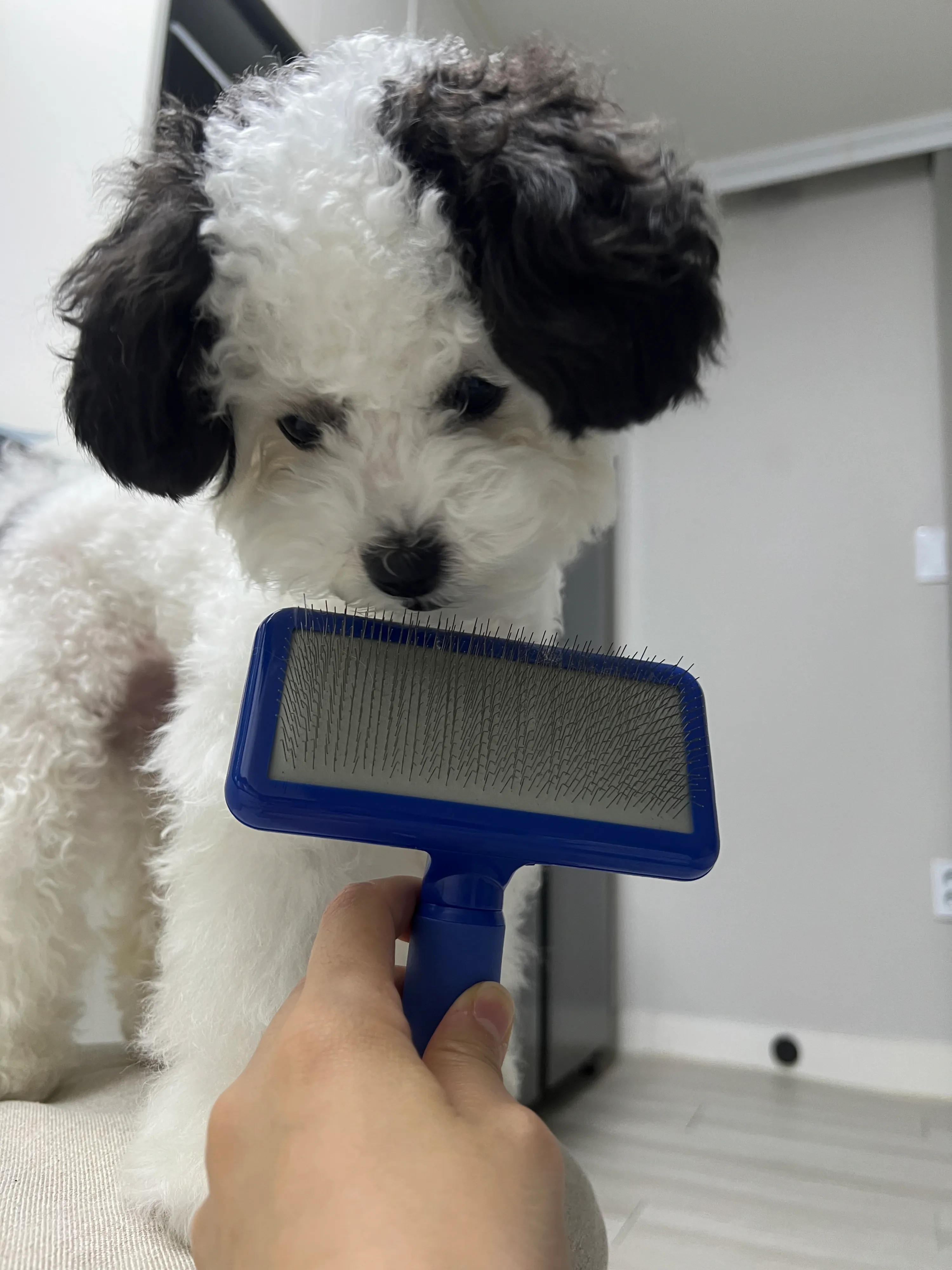 꿈콩이가 원래 쓰던 빗을 워낙 싫어해서 엄청 심사숙고하고 고른 슬리커입니다! 원래 빗질 자체를 싫어해서 싫어하는 티는 내긴 하지만, 아픈건 없어보여요! 전에 사용한 슬리커는 낑낑 거리기도 했거든요 ㅠㅠㅠㅠ확실히 브러쉬가 촘촘해서 인지 털도 더 보송보송 예쁘게 빗질 돼서 더욱 좋답니다!!!