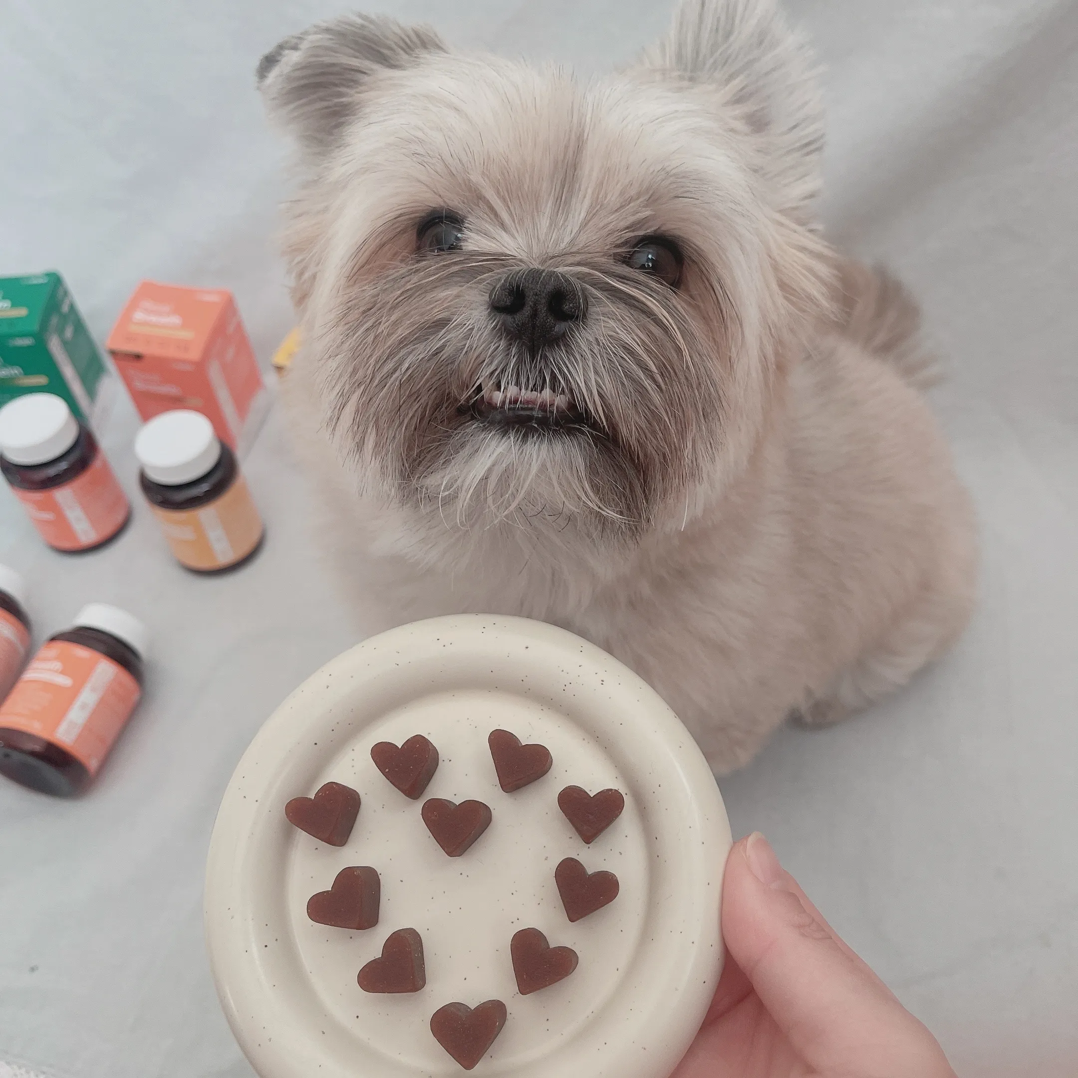(tmi. 옴마가 예쁘게 하트모양으루 영양제 배열해놨는데 내가 몰래 세개나 냠냠해서 새 영양제 뜯어서 채웠다😅 옴청 맛있됴😋)