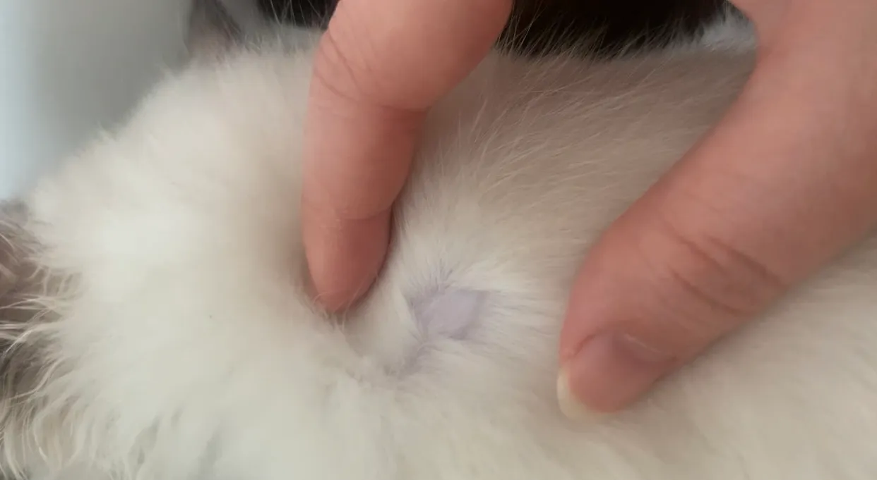 4개월 고양이 등에 이렇게 땜빵이 있는데 큰 문제일지 걱정되어서 글 올립니다. 빨갛거나 하진 않고 한군데만 이러네요. 왼쪽 등어깨쪽?에 있습니다. 괜찮을까요..??