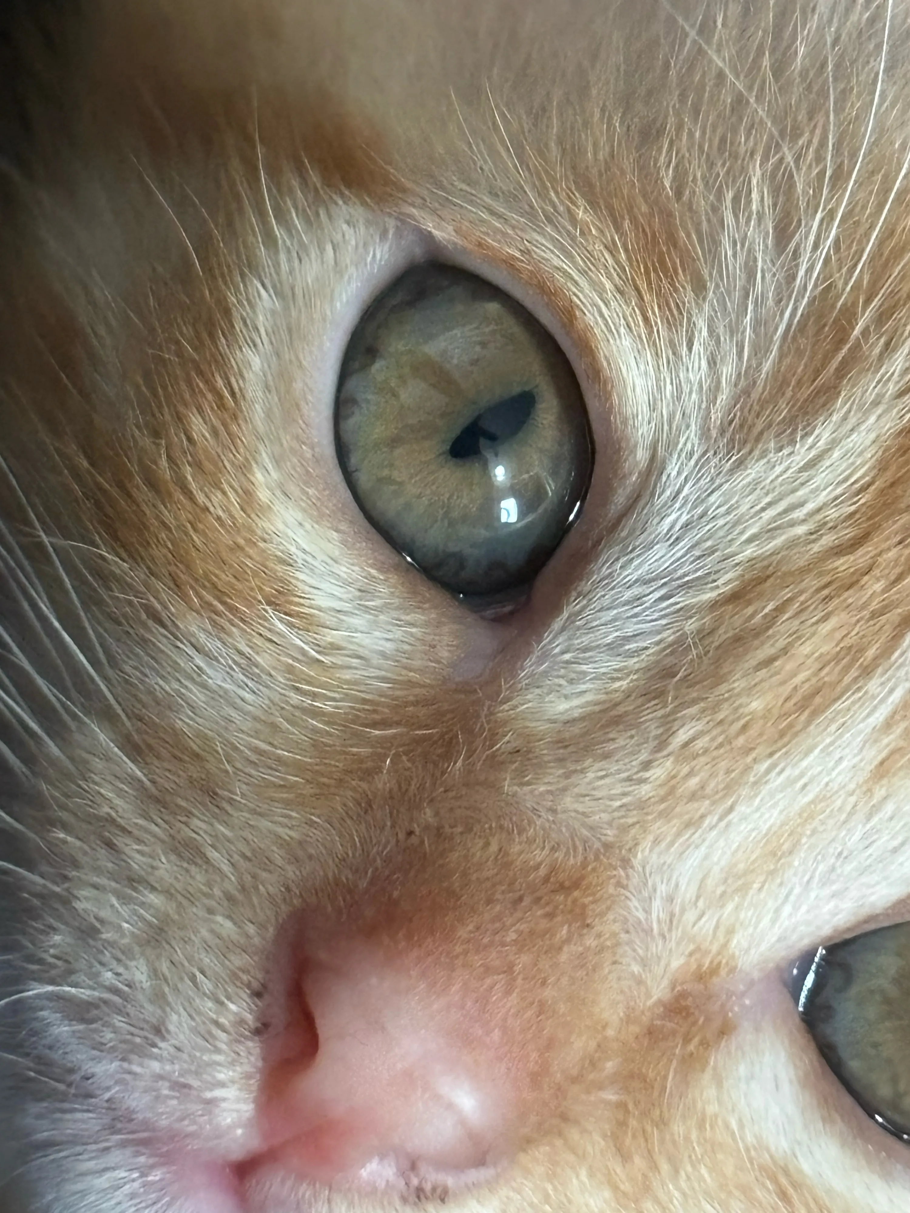 안녕하세요 데려온지 일주일 정도 된 고양이인데 눈에 갈색 이물질이 보입니다. 조치를 취해야할까요..?