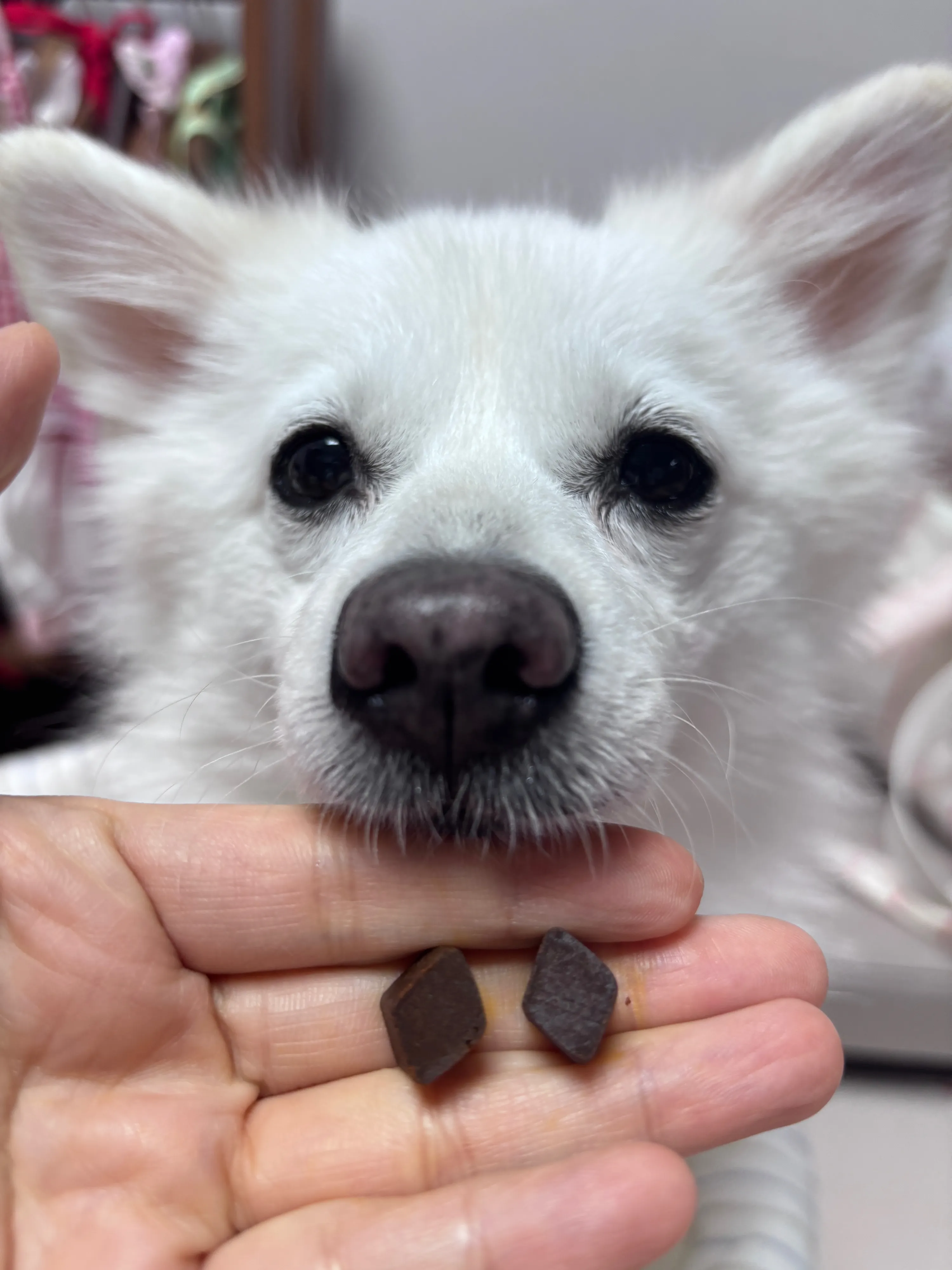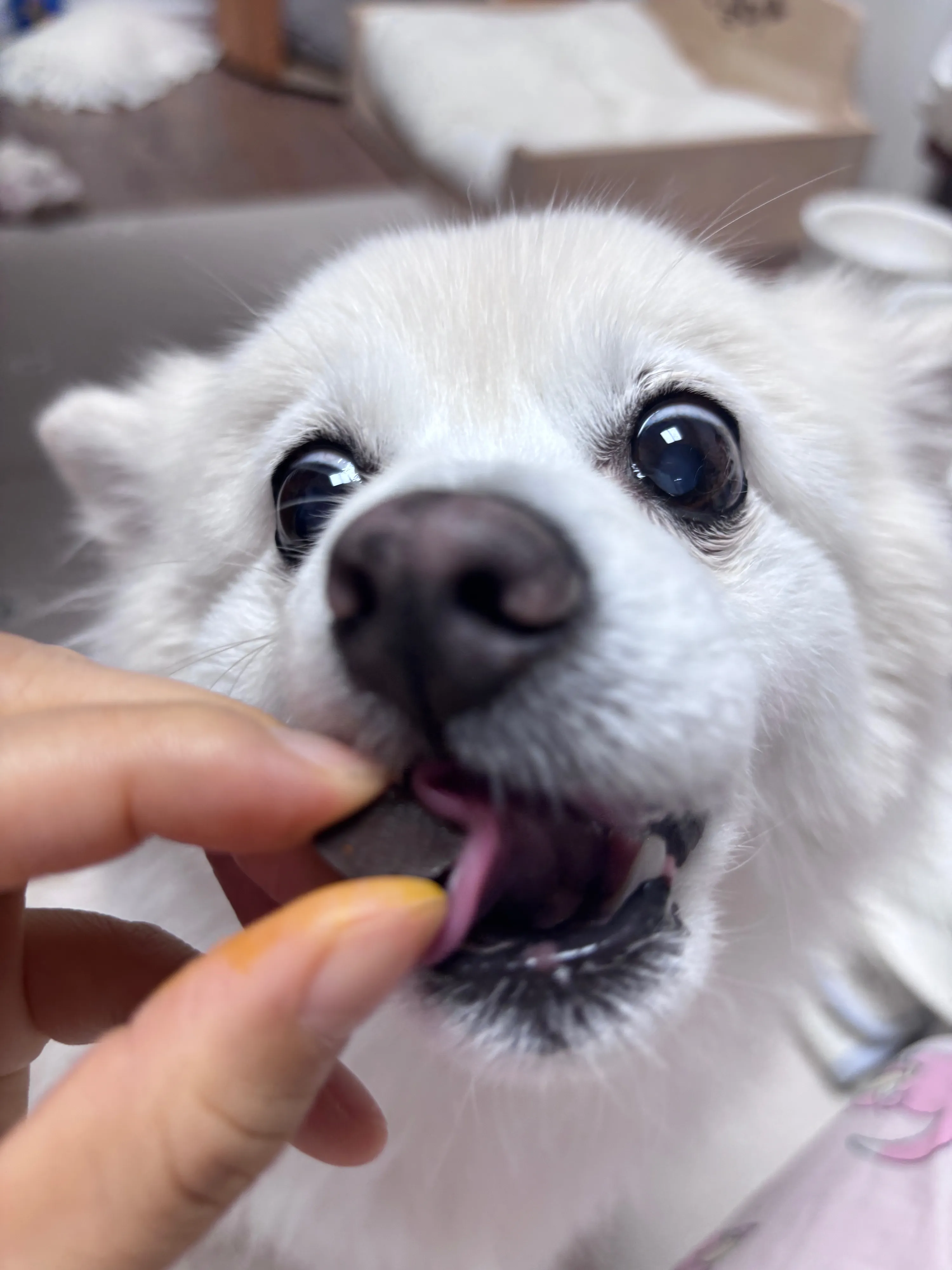 일단 작은 츄 형태이고 기호성이 있는지 빨리 달라고 얼굴로 밀고 코로도 밀고.. 날리였어요 ㅎㅎ