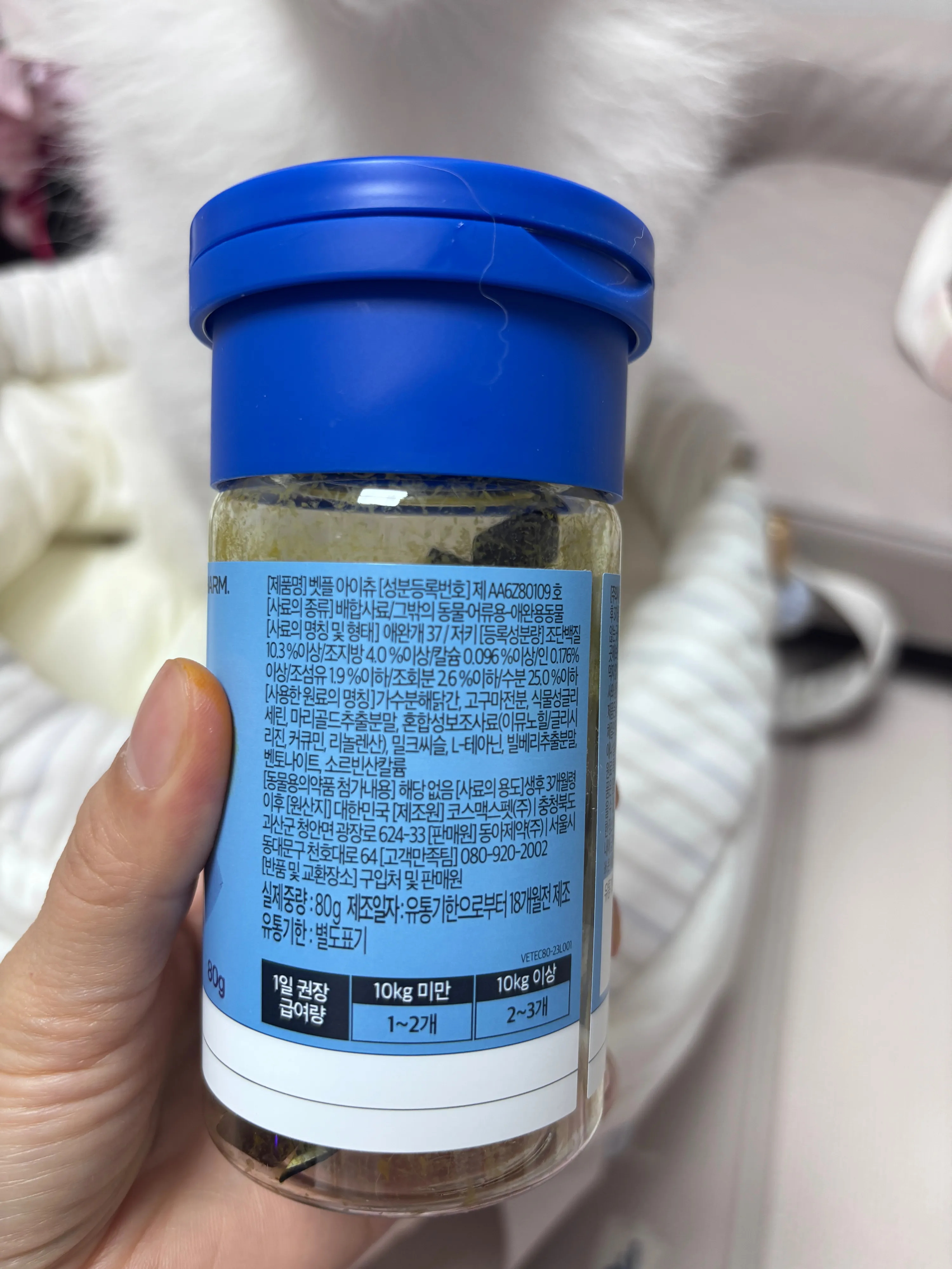 동아제약 수의사가 직접 설계한 영양제라고 되어있어서 장바구니에 담아 뒀다가 구매하고 바로 급여해보았어요