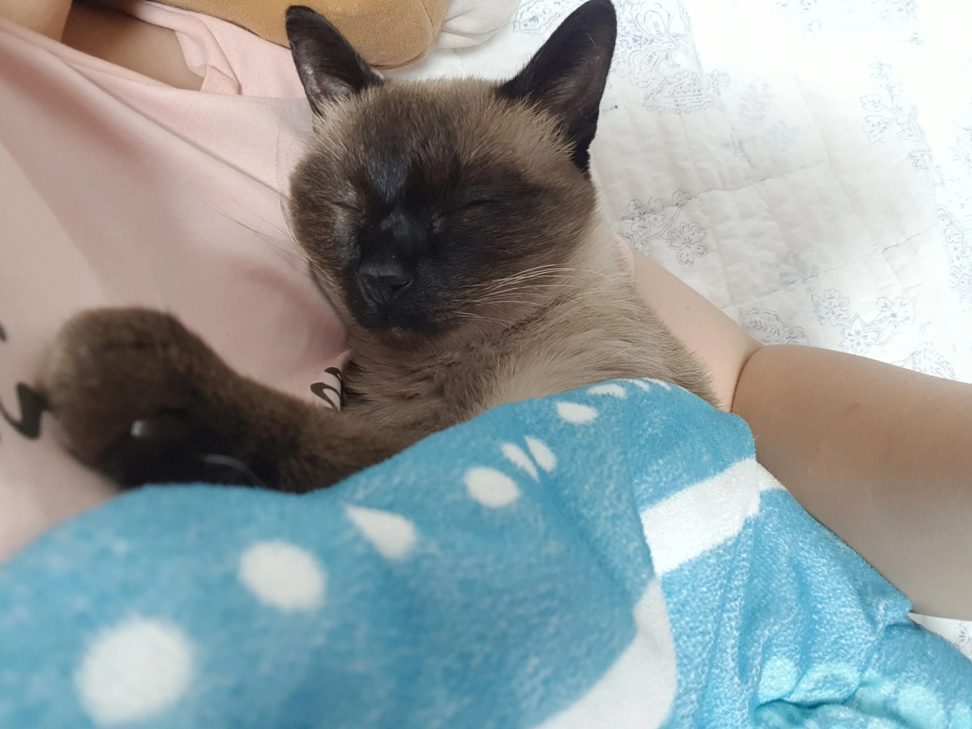 엄마 팔베고 꼭 안겨 아기처럼 자는 울집 첫째 고냥이
