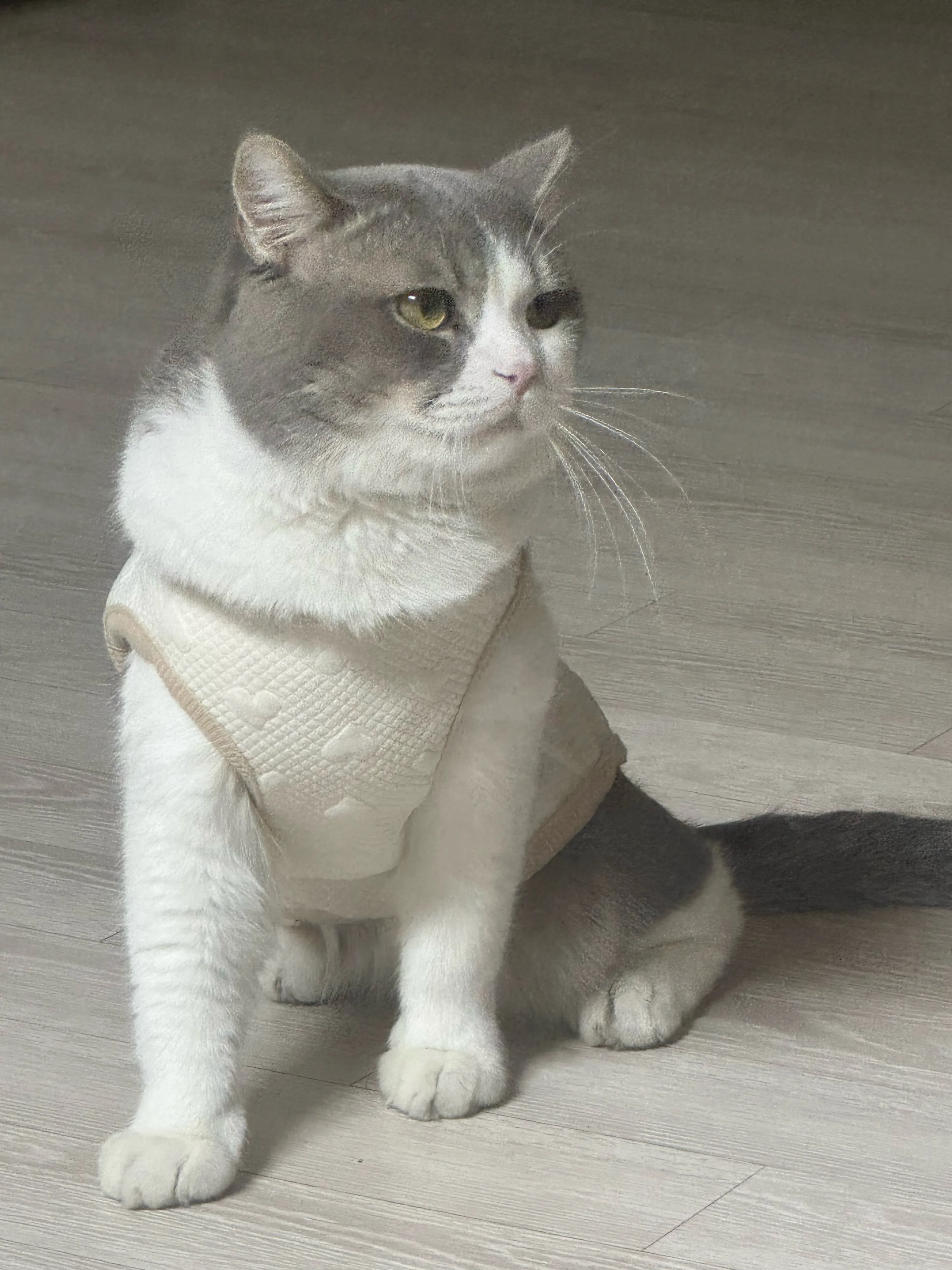 고양이가 추위를 잘 탄다고 해서 아까 다이소에서 옷 사서 입혔는데 불편해할까봐요ㅜㅜ 적응 되면 괜찮나요??고양이들 옷 입혀보신 집사님들 알려주세요!!ㅠㅠ