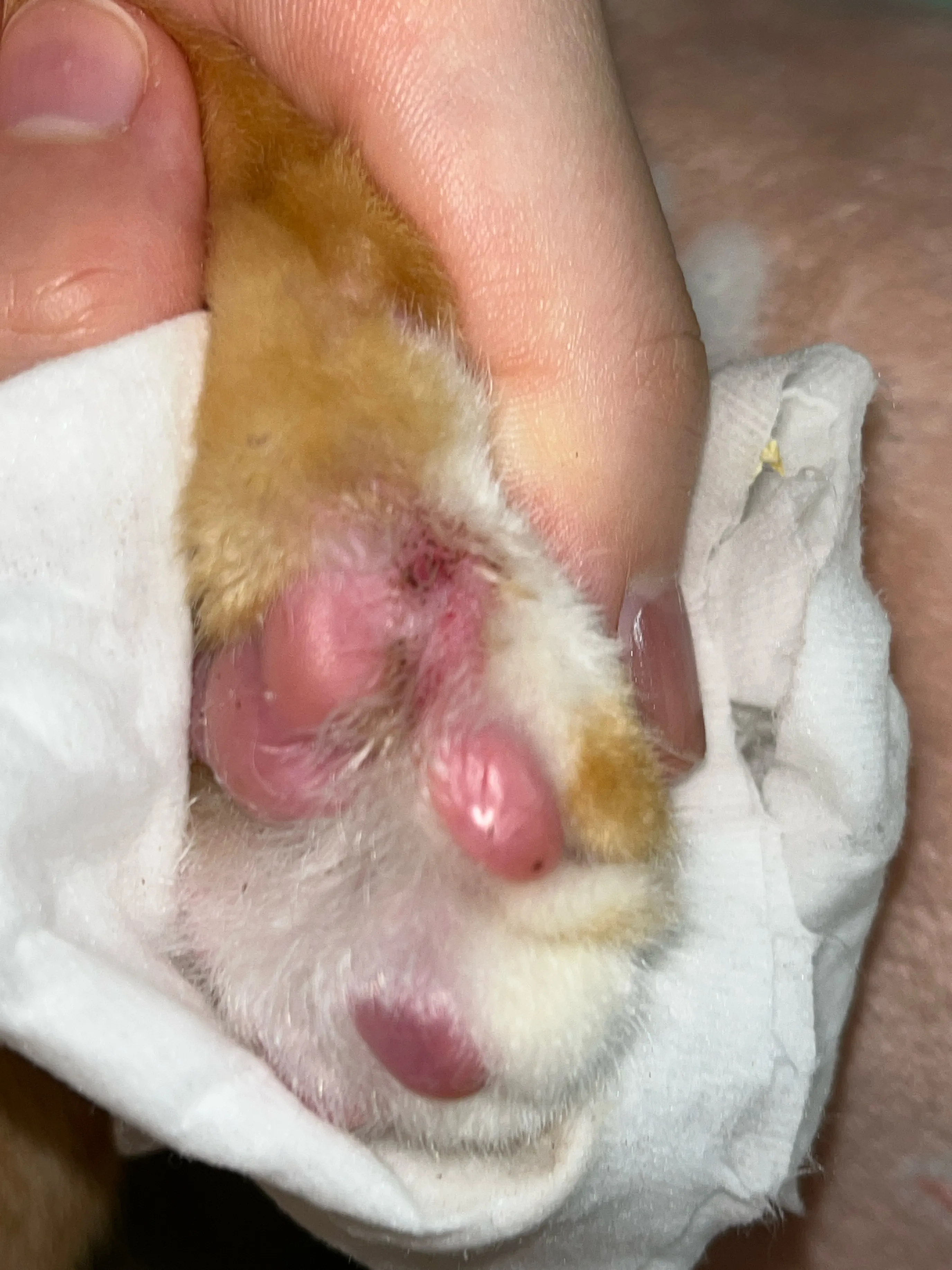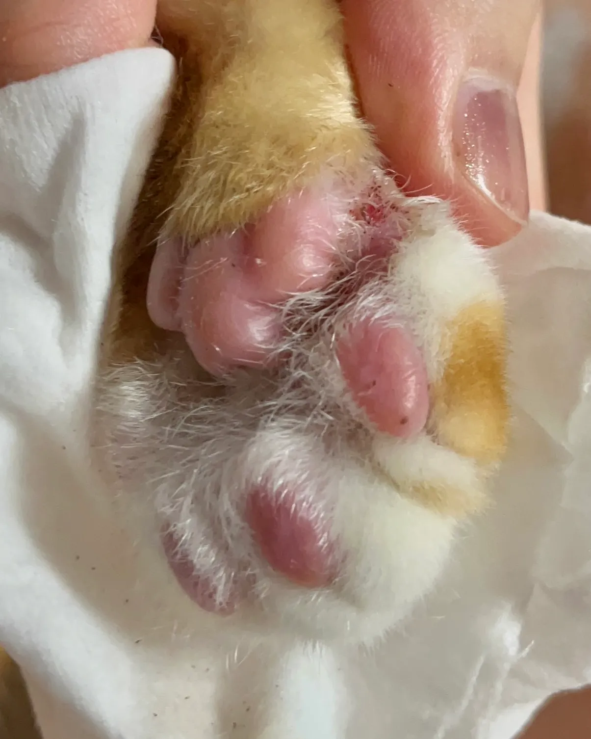 애기 발에 뭐가 묻은 것 같아서 닦다가 발견했어요 ㅠㅠ 빨갛고 닦으려고 하면 엄청 싫어하더라구요 ㅠㅠ하루빨리 병원에 가는 게 나을까요? 아니면 동물전용 연고사서 발라 놓으면 될까요ㅠㅠㅠ??