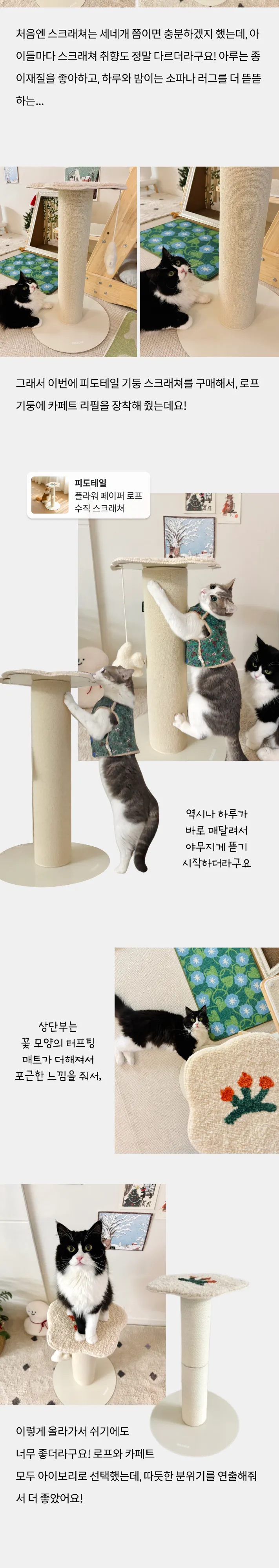 [무료배송] 피도테일 플라워 페이퍼 로프 수직 스크래쳐 화이트/페일베이지