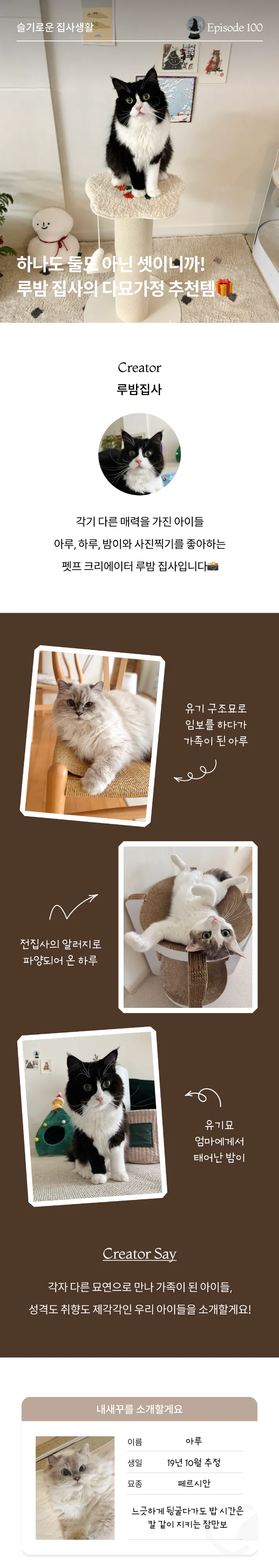 Creator. 루밤집사 님👇🏻사진👇🏻을 클릭해 집사일기 100편을 정독하고, 크리에이터가 추천하는 상품도 둘러보세요