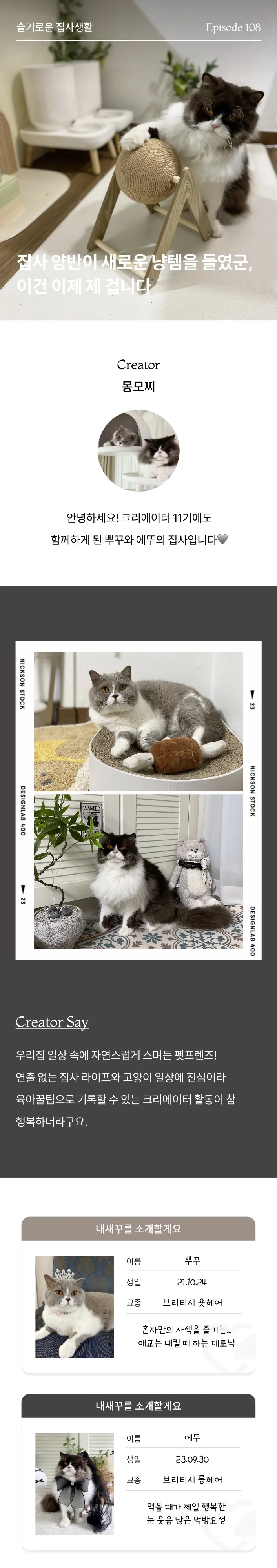 Creator. 뿌꾸에뚜 님👇🏻사진👇🏻을 클릭해 집사일기 108편을 정독하고, 크리에이터가 추천하는 상품도 둘러보세요