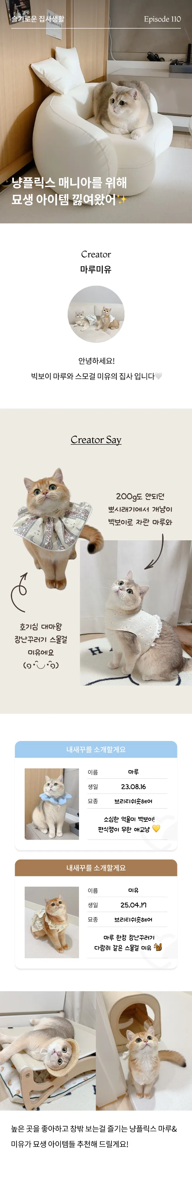 Creator. 마루미유 님👇🏻사진👇🏻을 클릭해 집사일기 110편을 정독하고, 크리에이터가 추천하는 상품도 둘러보세요