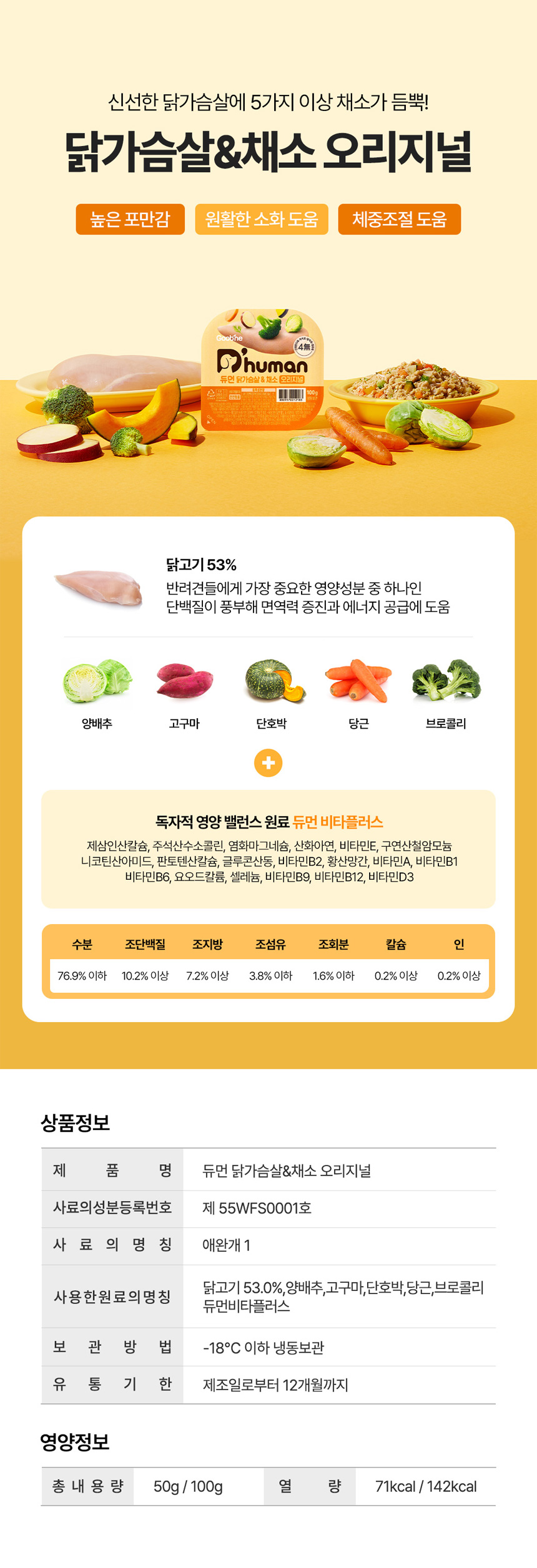 품명 및 모델명 | [무료배송] 듀먼 독 자연화식 닭가슴살&채소 오리지널 맛보기 샘플 50g*4팩 |