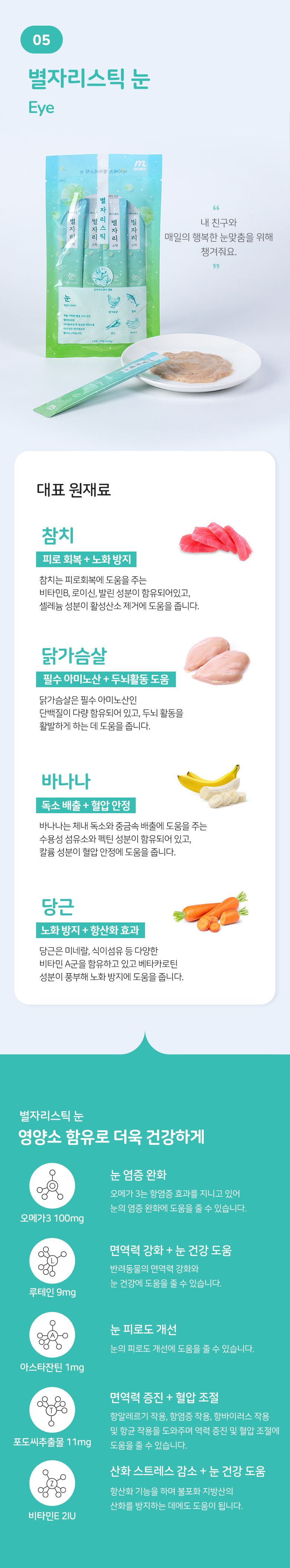 우리아이가 너~무 좋아하는 츄르, 별자리스틱은 우리아이가 좋아하는 츄르스틱을 먹이며 영양까지 챙길 수 있는 스틱이에요 : ) 심장,비타민,눈건강,관절건강 등 우리아이에게 필요한 영양성분으로 골라 아이에게 급여해주세요 ! 기호성도 좋은데 영양성분까지 가-득! 이제, 우리아이 간식 별자리스틱으로 챙겨주세요 : )