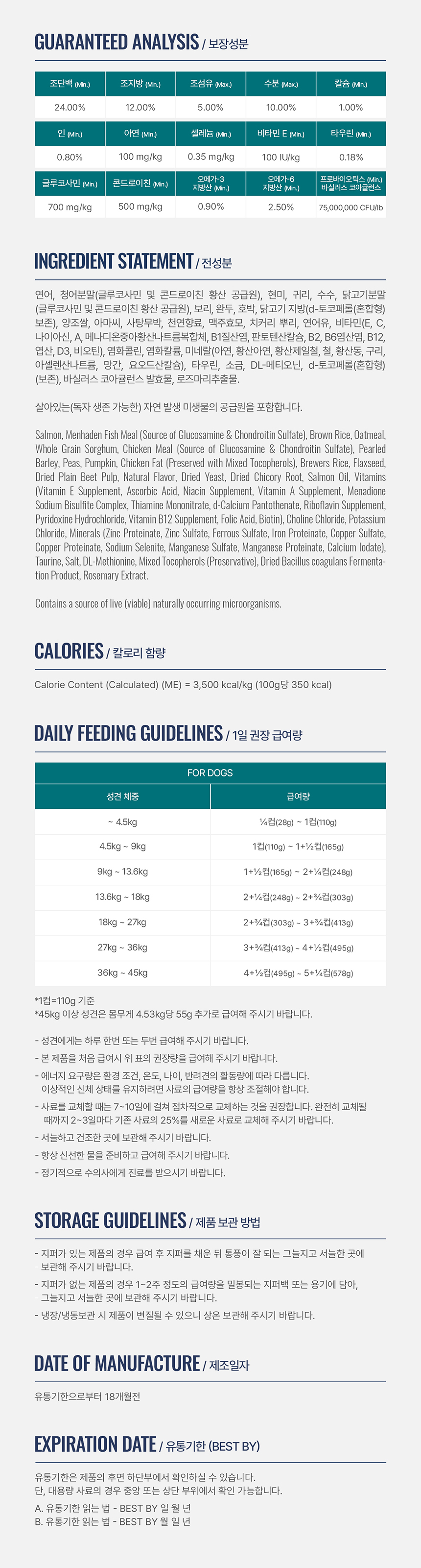 품명 및 모델명 | 내추럴발란스 헬스프로텍션 연어&현미&호박 레시피 강아지사료(큰알) 9.97kg |