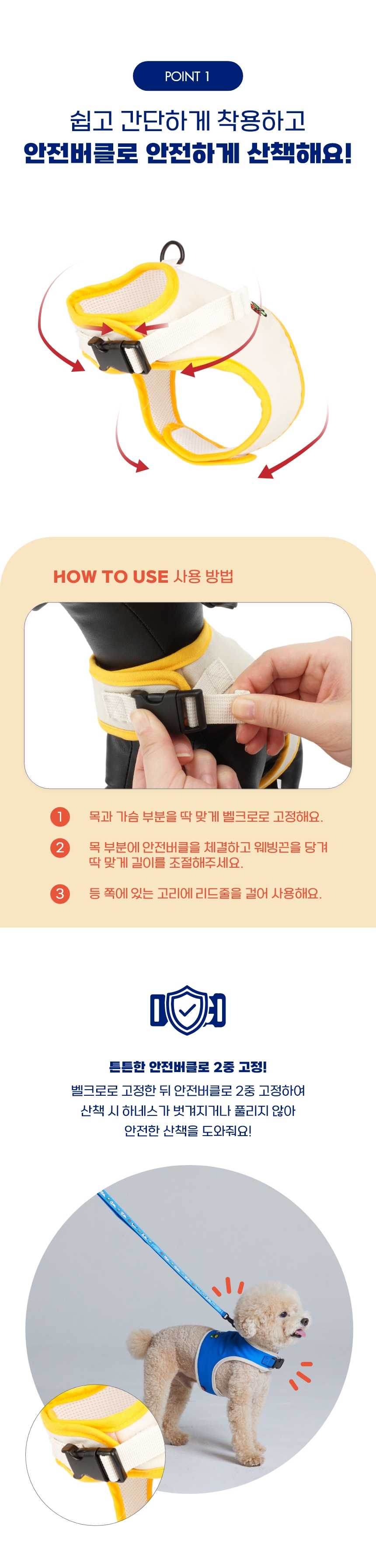 플로트 플라워 안전버클 하네스 2컬러 강아지 산책용품