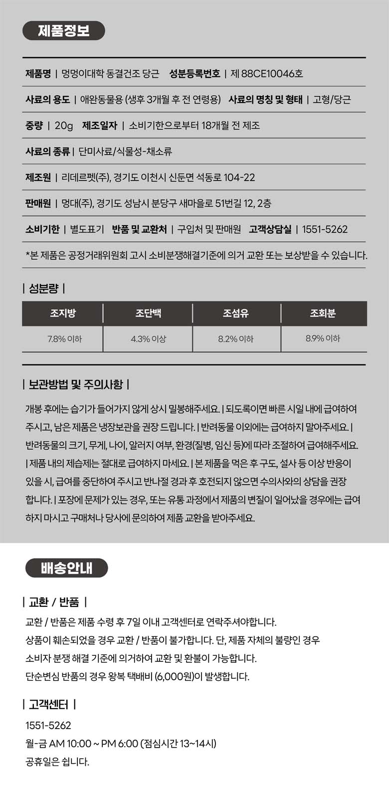 [무료배송] 멍멍이대학 동결건조 당근 20g