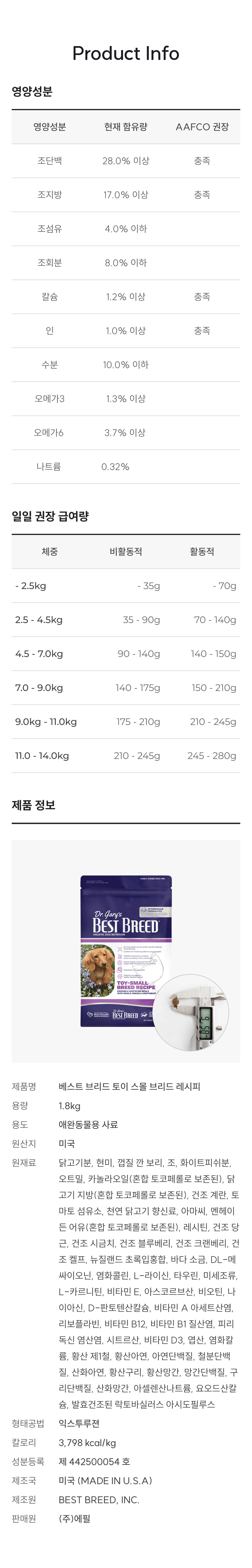 [NEW신상]배스트브리드 독 홀리스틱 토이 스몰브리드 레시피 1.8kg